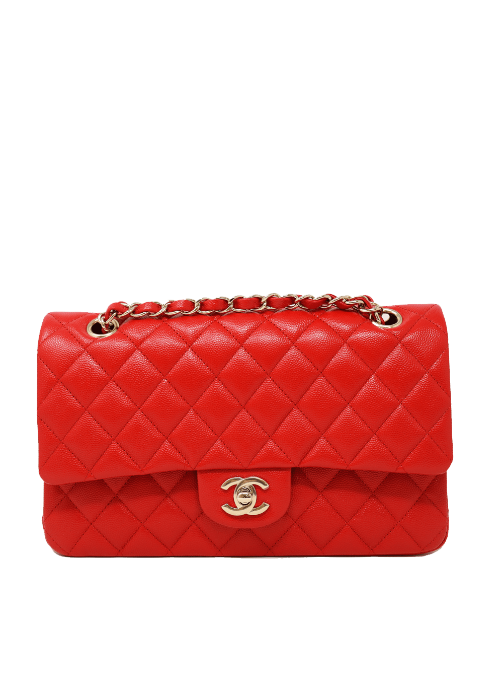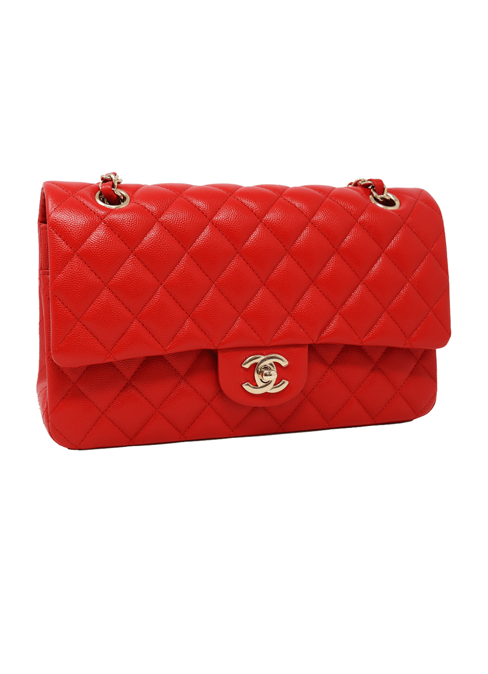 Beautiful red caviar leather, champagne toned metal work, signature quilting and of course the emblematic interlocking CC.