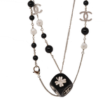 - Chanel Necklace in Silver Tone Metal with Black Beads + Chanel Logos