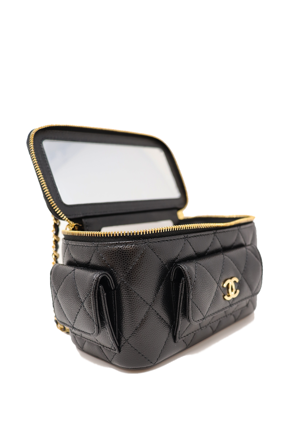 CHANEL Mini Vanity Case in black caviar leather