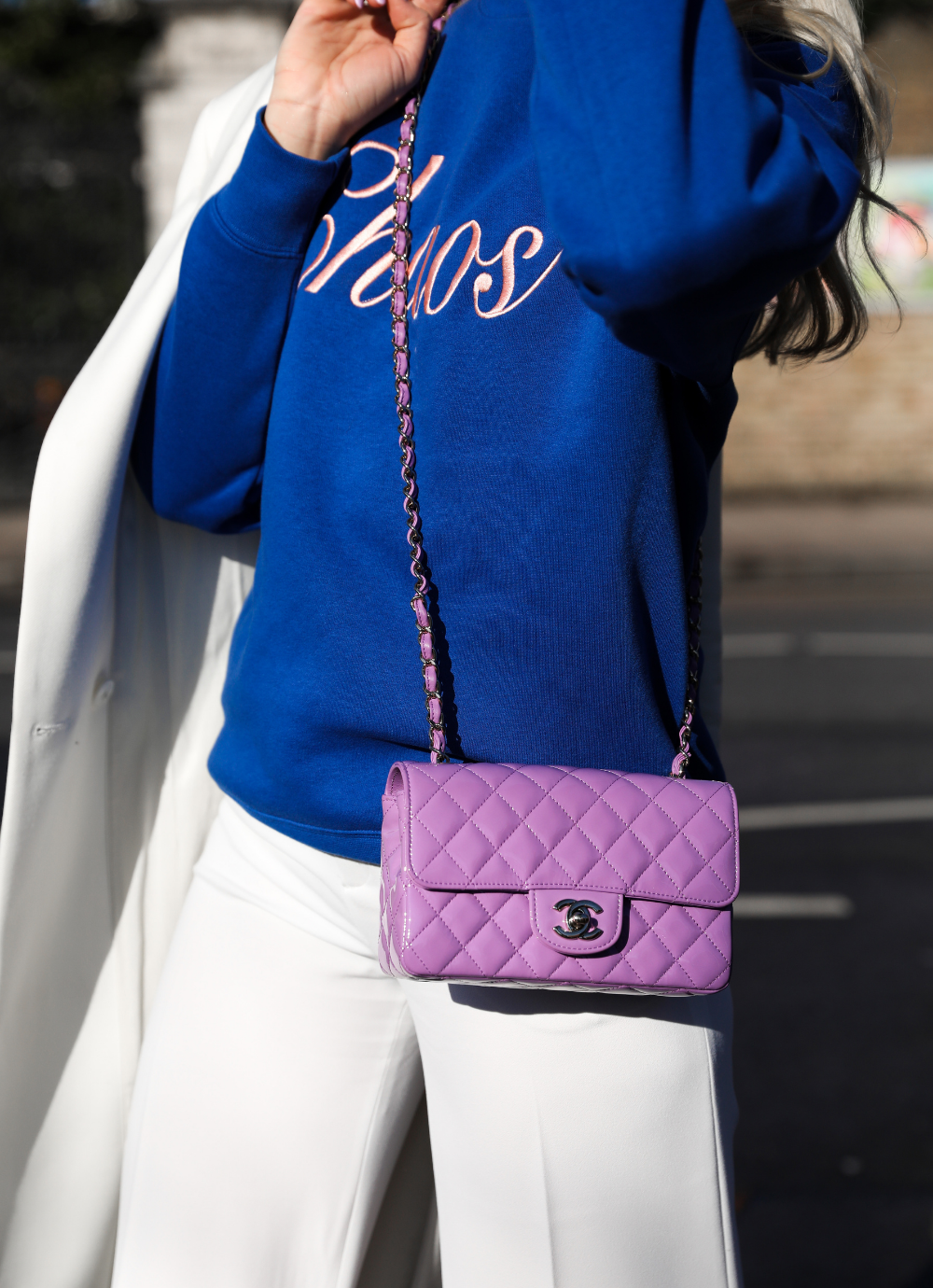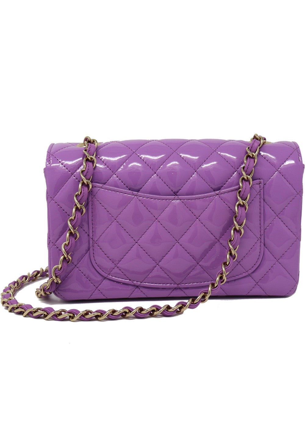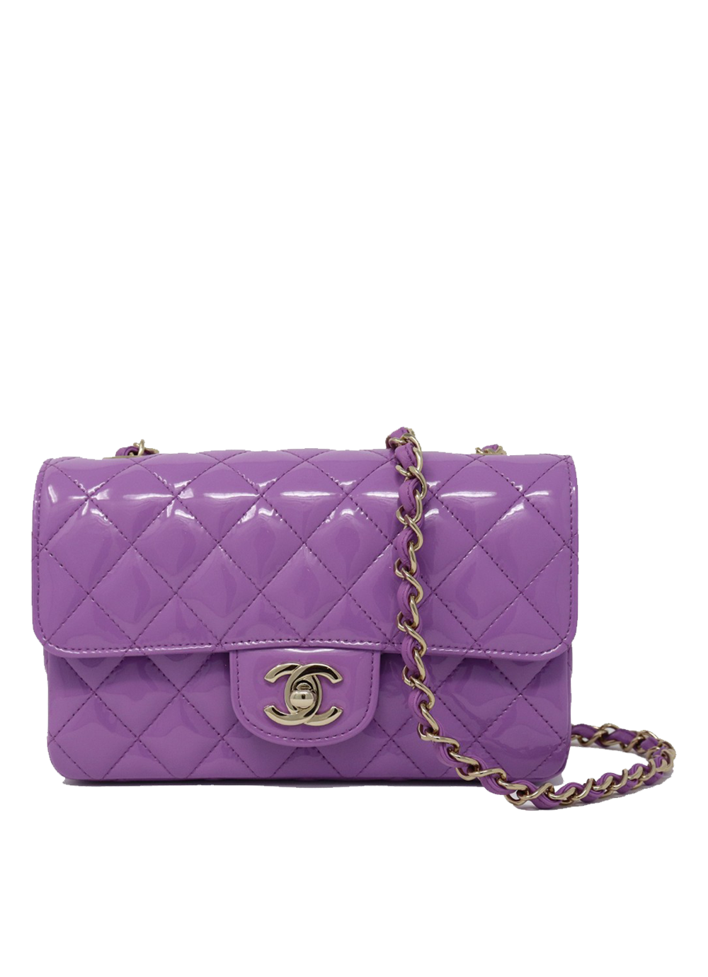 We love the Chanel Mini Flap bag for its perfect proportions and all round tactile loveliness. Here it is in a fresh pale lilac / purple patent leather. Surprisingly this beautiful colour looks fabulous with bright red but is of course very good with navy, white and all of the pastel shades.