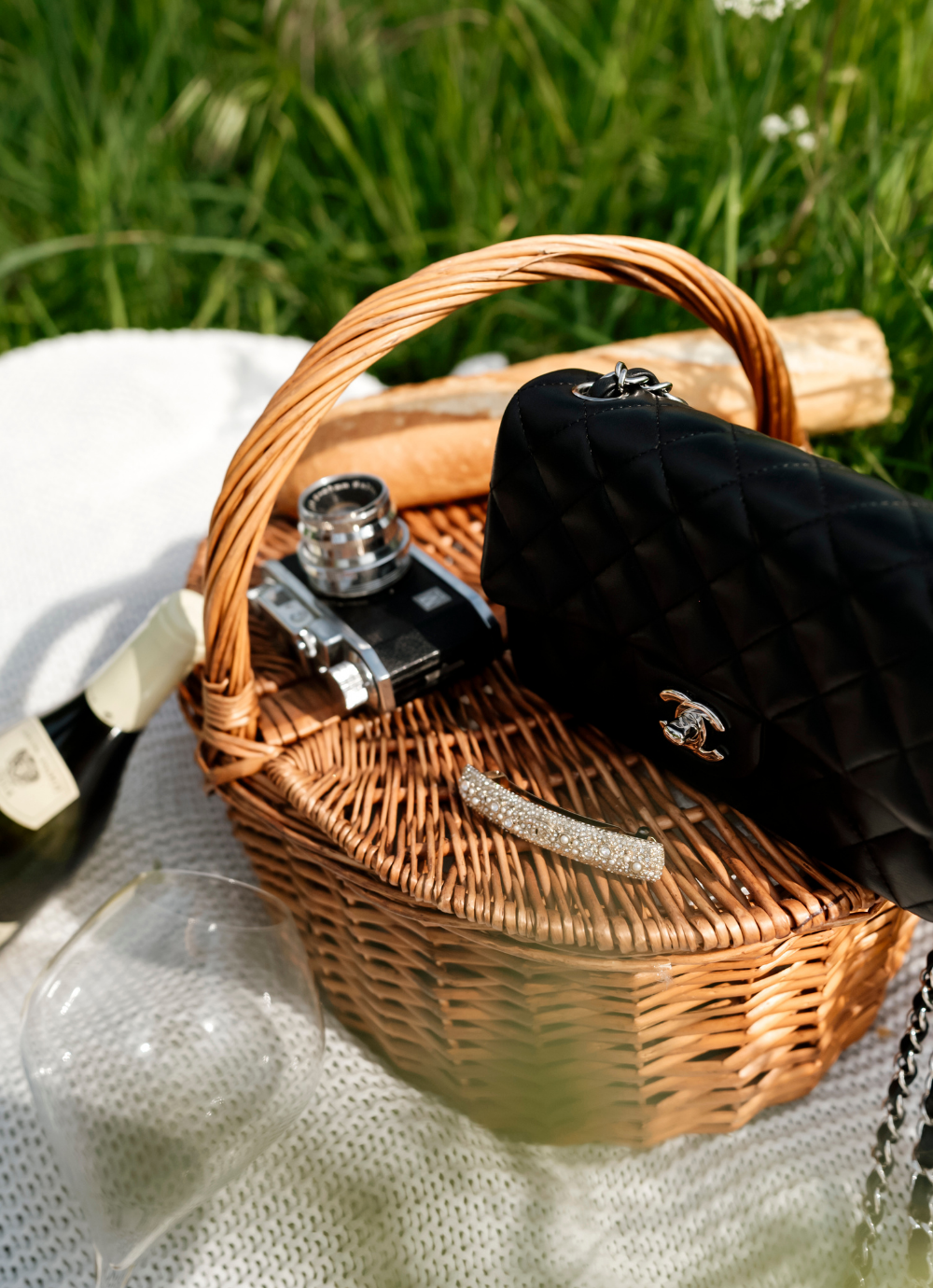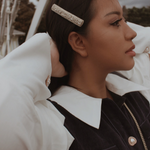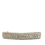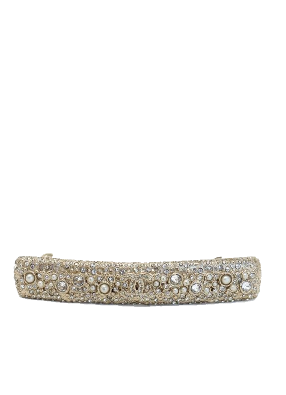 This sublimely pretty, rare vintage Chanel barrette hairslide is intricately adorned with pavé set crystals and glass pearls around the famous interlocking CC logo. We love this beautiful designer vintage piece and imagine it as a bridal hair accessory for Chanel lovers everywhere. A very special something old, something borrowed that is also always on trend.