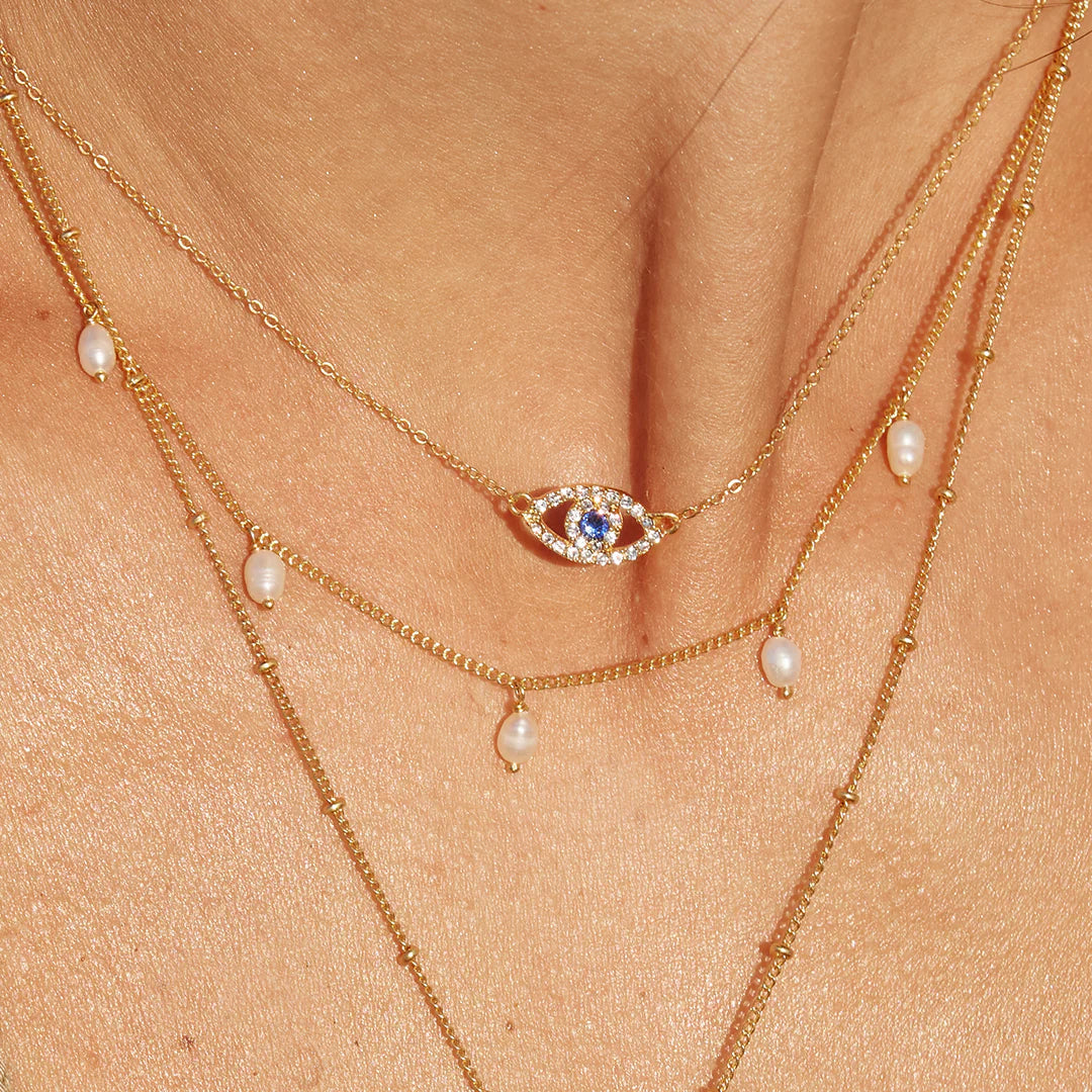 The Positano pearl and chain necklace is handcrafted from genuine freshwater seed pearls with an 18K gold plated chain and is part of our Golden Hour collection. Sunsets, sunrises, salt air and beaches from all over the world have inspired this new collection. European beachside glamour in the 1960’s, sunny beaches and warm breezes with sun-dappled nonchalance. That beautiful feeling of summer, sun-kissed golden glowing skin, white sandy beaches and azure blue oceans. It is a feeling and a lifestyle I would want to experience every day! This collection captures magical coastal locations including Positano, Cannes, Mykonos and St Tropez.