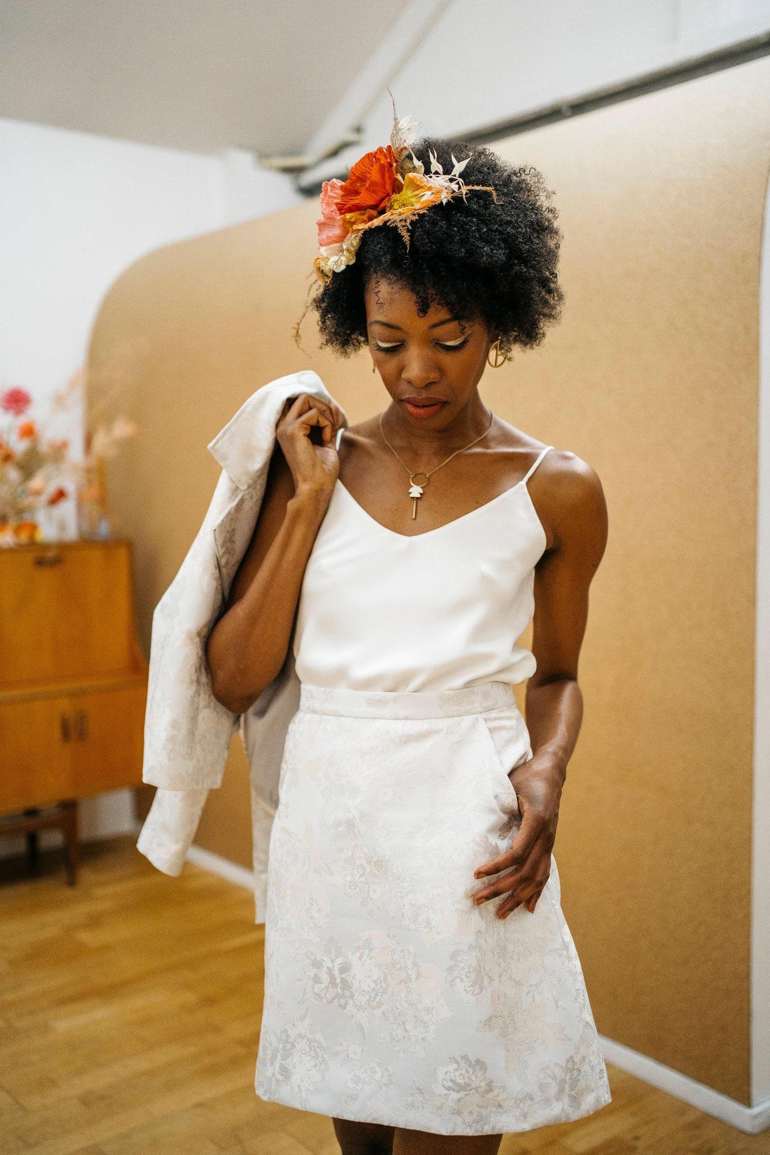 Simple but elegant, the bias-cut silk camisole top is perfect for pairing with the Biker mini skirt, and will fit in perfectly into your wedding wardrobe to wear in so many different ways. It is lined with silk satin which feels luxurious against the body.