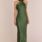 REWRITTEN Roma Bridesmaid Dress - Olive Green Satin