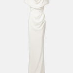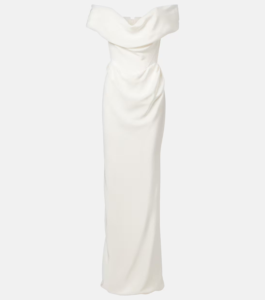 - Off-the-shoulder neckline with draped detailing.
